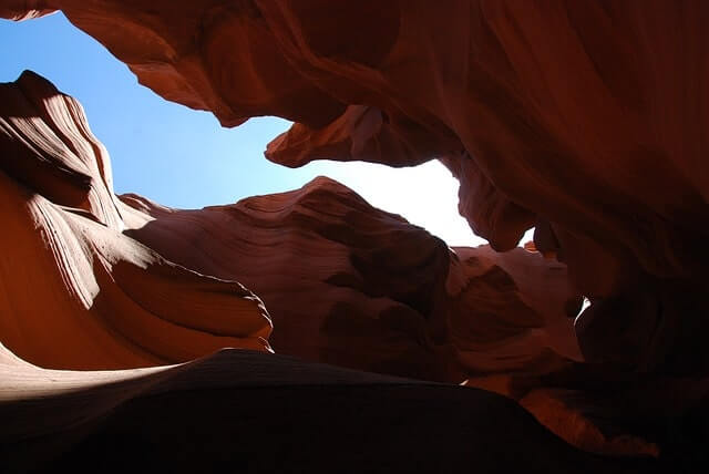 アメリカのグランドサークル内にある、アンテロープキャニオン。鉄砲水によって、岩肌が浸食されてできた洞窟です。